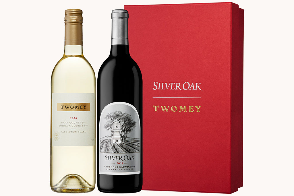 Perfect for someone who loves both red and white wine, this gift includes (1) 750ml bottle each of our 2021 Silver Oak Alexander Valley Cabernet Sauvignon and 2024 Twomey Sauvignon Blanc. These wines are safely encased in our classic holiday box.