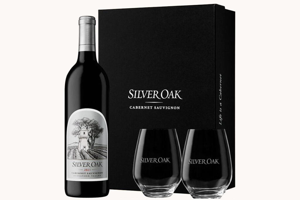 One of our most popular gifts is back. This set includes one bottle of our 2021 Alexander Valley Cabernet Sauvignon and (2) elegant stemless Silver Oak wine glasses, all beautifully and safely encased in our gift box.